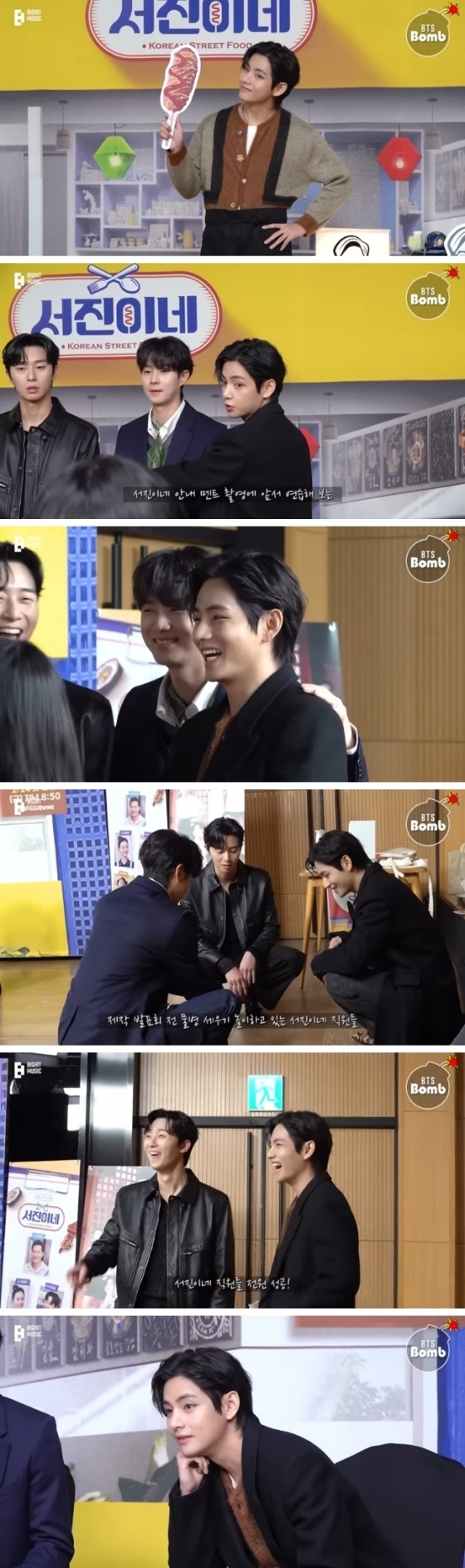 [문완식 스타뉴스 기자] 방탄소년단(BTS) 뷔가 '서진이네' 제작발표회에서 출연진들과의 화기애애한 모습으로 즐거움을 선사했다.