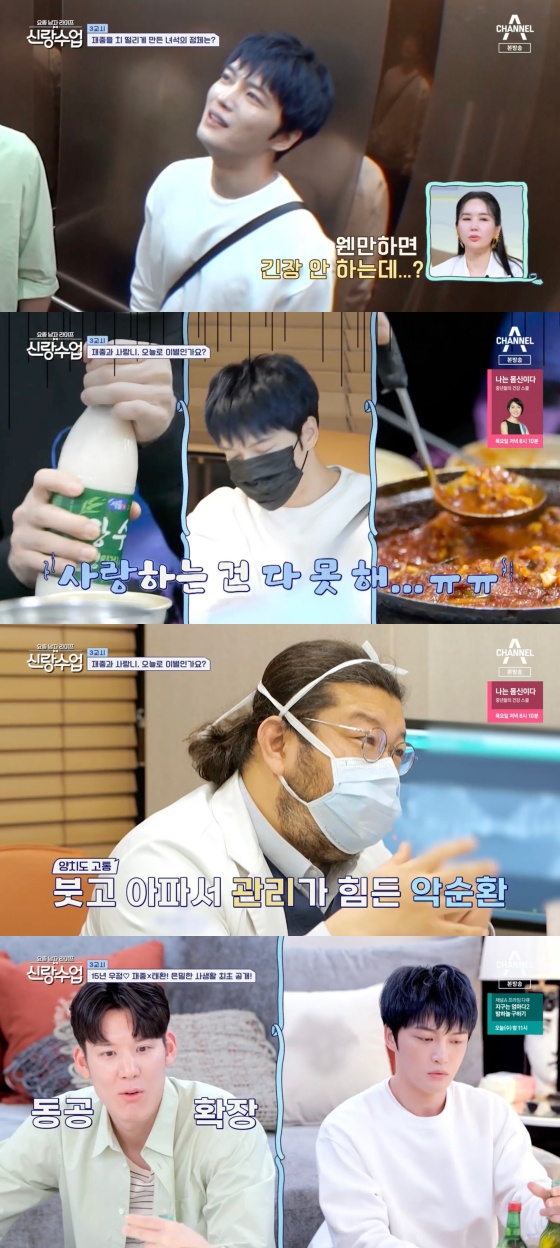 이후 김재중이 박태환과 함께 치과에 가는 장면도 담겼다. 김재중은 박태환에 사랑니를 뽑으면 매운 음식도 못 먹고 금주를 해야 한다며 두려워했다. 의사는 김재중에 "언제 마지막으로 아팠냐"라고 물었다. 김재중은 "3~4주 전"라고 답했다. 의사는 "너무 피곤했죠?"라고 물었다. 김재중은 "피곤했다"고 답했다. 의사는 "붓고 아프면 치실도 안 들어간다. 사랑니가 꽤 크다. 오늘 제거하려는 사랑니가 이 치아다. 잇몸 속에 사랑니가 묻혀있다"고 설명했다.