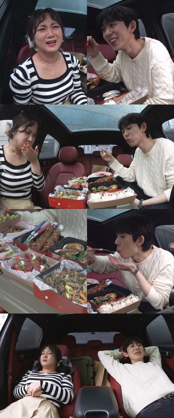 박나래는 코드 쿤스트를 위해 4시간을 준비한 정성 가득 도시락을 꺼낸다. 그의 로망은 잔디밭에서 따뜻한 햇살을 맞으며 도시락을 먹는 거였지만, 날씨가 도와주지 않는 탓에 야외 피크닉 대신 후드득 떨어지는 빗소리를 들으며 차 안에서 피크닉을 즐긴다.