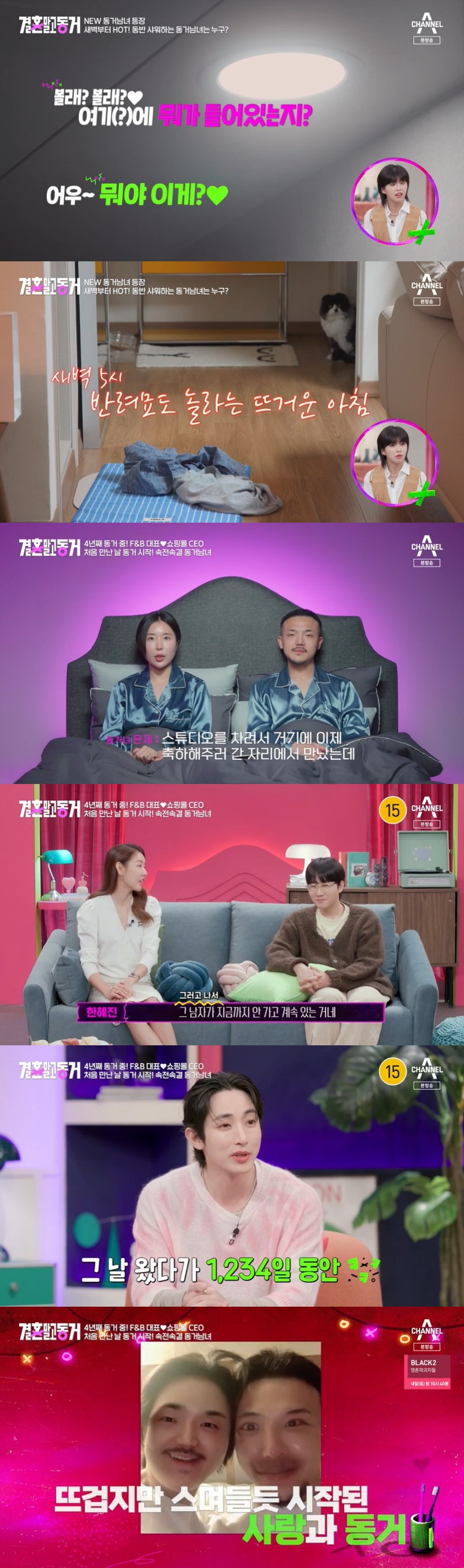 21일 방송된 채널A '결혼 말고 동거'에서는 새벽 5시부터 함께 샤워하며 화끈한 24시간을 보내는 새로운 동거남녀 도경학, 이은제의 모습이 그려졌다.