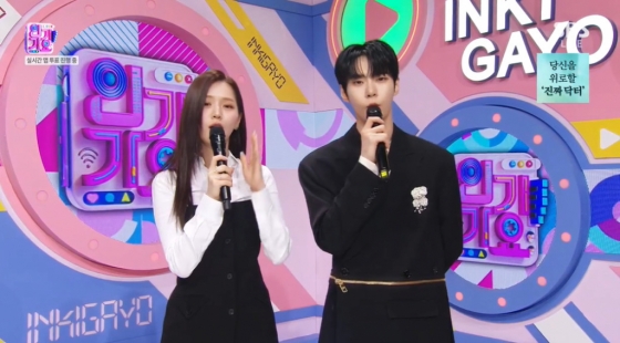 23일 방송된 SBS 음악프로그램 '인기가요'에서는 MC인 NCT 멤버 도영과 배우 김지은이 검은색 옷을 입고 등장했다.