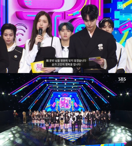 MC 김지은은 "그리고 안타깝고 가슴 아픈 소식이다"라며 고 문빈의 비보를 전했다. 도영은 "항상 환한 미소와 밝은 에너지를 주신 분이라 이 사실이 더 믿기지 않는다"라며 "무대 위에서 더 빛났고 열정적이던 그의 모습 영원히 기억하겠다"라고 말했다.