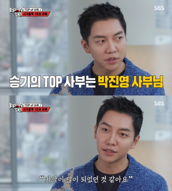 이승기는 기억나는 사부로 박진영을 꼽았다. 그는 "그분이 살아가는 루틴을 보면서 자극이 많이 됐던 거 같다. 아직도 저렇게 하는구나"라고 감탄했다.