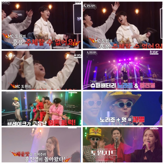 4월 24일 방송하는 K-STAR '도원차트 시즌3'에는 '흥'하면 둘째가라면 서러울 정도의 가요계의 흥부자 노라조와 홍진영이 출연한다.