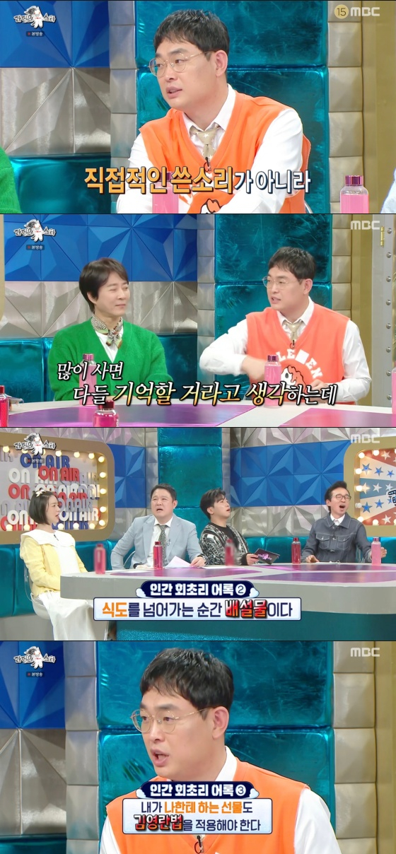 이후 박영진이 화제가 됐던 어록들을 공개했다. 박영진은 "내가 쏜 걸 기억하는 사람은 나랑 카드사 뿐이다"라며 사람들이 전혀 기억 못 한다고 말했다. 박영진은 "그거 말고도 많이 사드시는 분한테는 '식도를 넘어가는 순간 배설물이다'라고 한다. 모든 사람한테 하는 말이 아니라 돈을 모으려는 사람한테 하는 독설이다"라고 전했다.