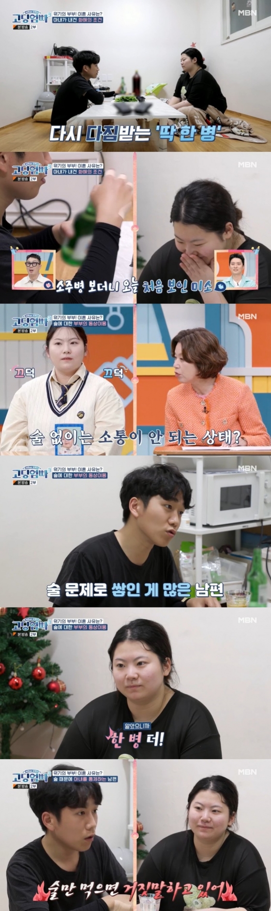 정현석은 "가족도 나 몰라라 할 정도로 마시는 게 좋은 건지 물어보는 거야. 그러면 너는 술을 좋아하면 안 되는 거야"라고 충고했다. 하지만 이다교는 남편의 말은 듣지 않고 술 마시기에만 열중했다. 이어 술을 한 병 더 먹겠다고 말했고, 이에 정현석은 "술만 먹으면 거짓말하고 있어"라며 약속을 지키지 않는 이다교에 화를 냈다.