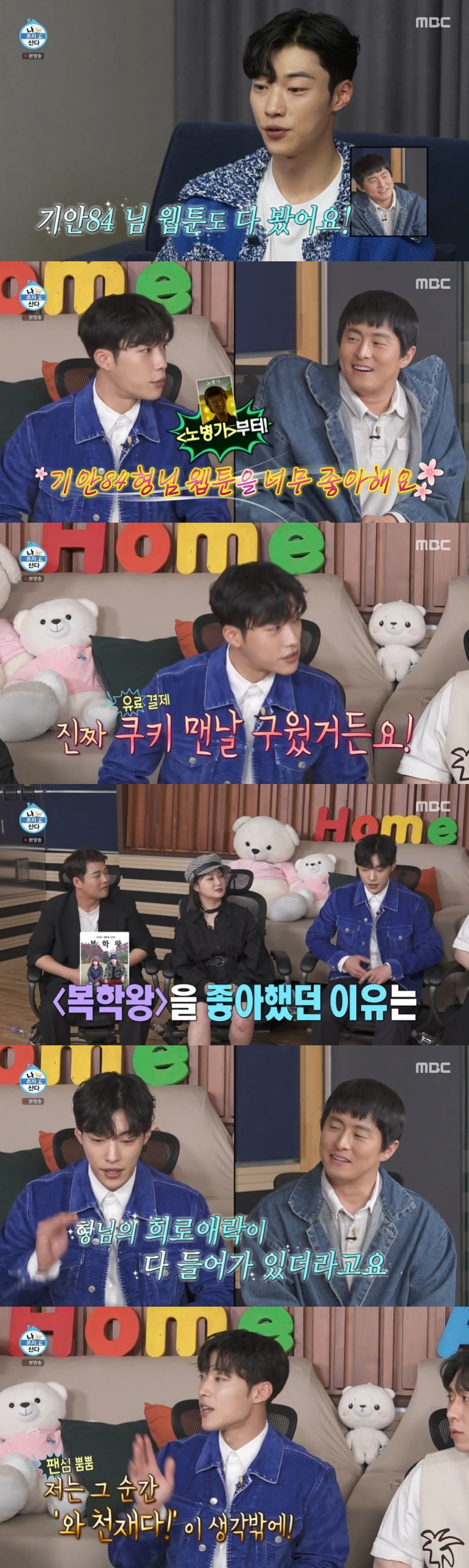 이날 방송에서 우도환은 만화는 보는 취미가 있다며 "저는 웹툰도 정말 많이 봐요. 그래서 기안84 님 웹툰도 다 봤어요. 기안84 님 웹툰을 너무 좋아해요. '노병가'부터 해서 '패션왕'이랑 '복학왕'도 끝까지 다 봤거든요"라며 기안84의 웹툰을 좋아한다고 밝혔다. 이어 "쿠키도 맨날 구웠거든요. 제가 좋아했던 이유가 '복학왕' 안에 형님의 희로애락이 다 들어가 있더라고요"라고 덧붙였다.
