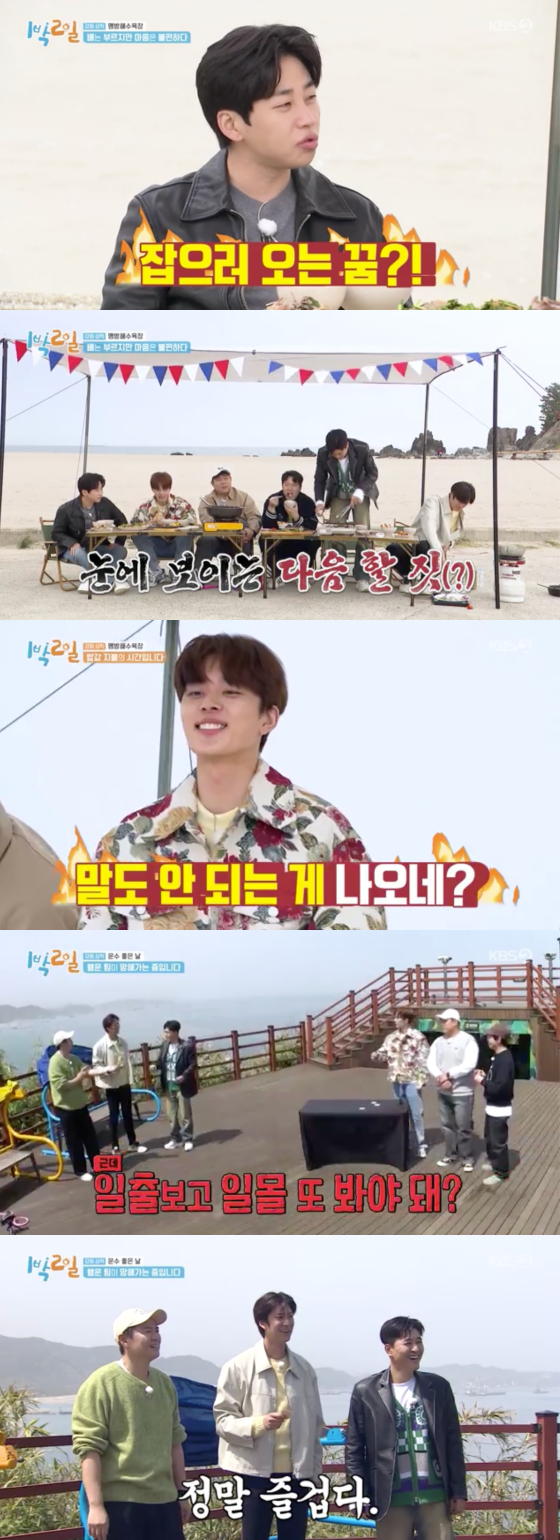 1라운드에서 승리한 것은 딘딘, 문세윤, 유선호 팀이었다. 나인우, 연정훈, 김종민 팀은 이에 '일출' 카드를 넘겨받았고, 연정훈은 "일출도 보고 일몰도 보고, 하루 종일 해와 함께하는 거다"고 말해 웃음을 자아냈다. 연정훈은 애써 "그래도 일출 보고 중간에 잘 수 있다"며 긍정적인 마음을 가지려 했으나, 유선호는 "저희는 집 가서 자겠다"고 답해 폭소를 더했다.