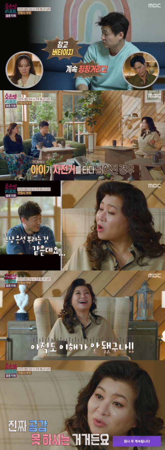 결국 오은영은 "아이는 떨어져서 놀란 마음인 거다. 놀라서 우는 거다. 남편은 아프다고 동조하면 아이가 약해질까 봐 아이의 마음을 못 보는 것이다. 남편분은 진짜 공감을 못하시는 거다"라며 남편의 개선이 필요한 문제점을 집어줬다.