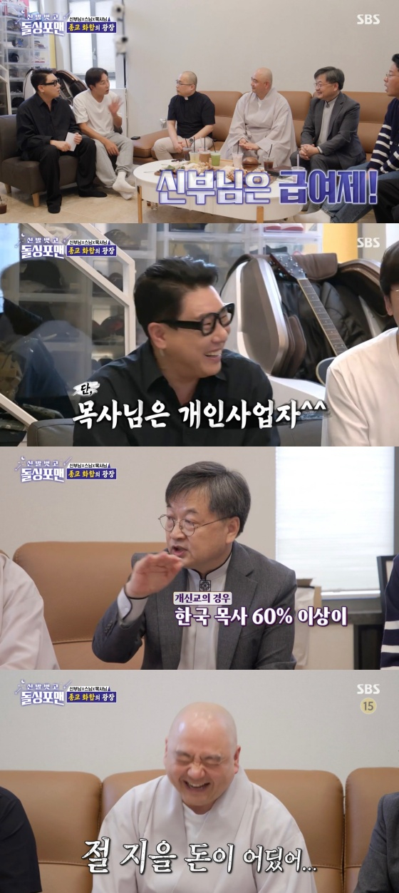 2일 방송된 SBS 예능프로그램 '신발 벗고 돌싱포맨'(이하 '돌싱포맨')에는 '종교 대화합의 날'로 김진 목사, 성진 스님, 하성용 신부 등 성직자 3명이 게스트로 출연했다.