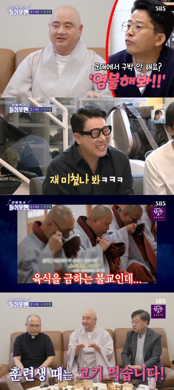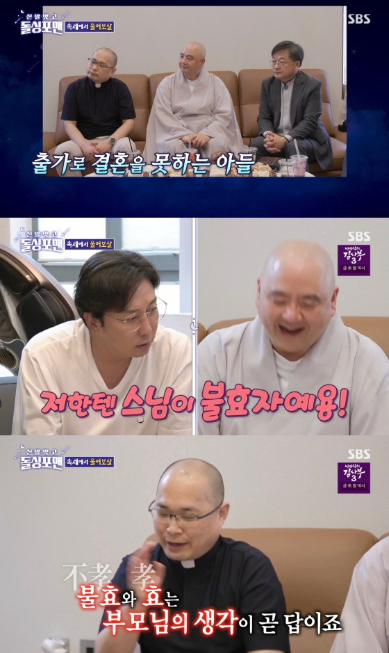 지난 2일 방송된 SBS 예능프로그램 '신발 벗고 돌싱포맨'(이하 '돌싱포맨')에는 '종교 대화합의 날'로 김진 목사, 성진 스님, 하성용 신부 등 성직자 3명이 게스트로 출연했다.