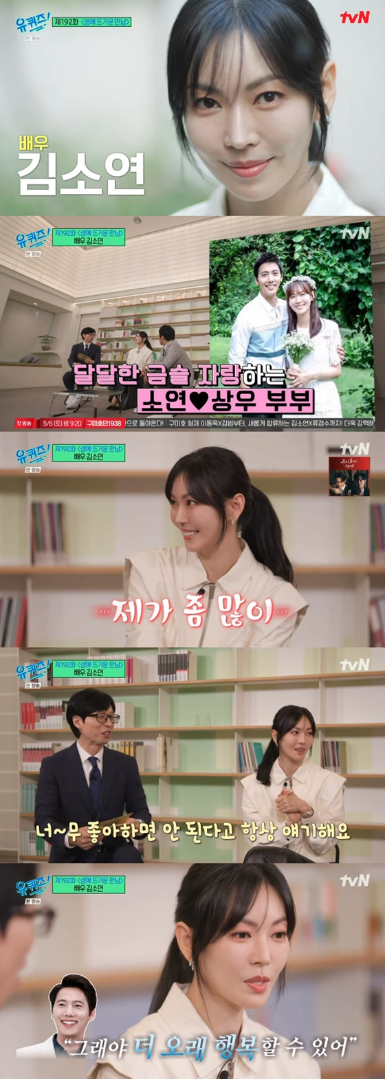 tvN 예능 프로그램 '유 퀴즈 온 더 블럭'(이하 '유퀴즈')에서 김소연이 남편인 배우 이상우와의 러브 스토리를 공개했다.