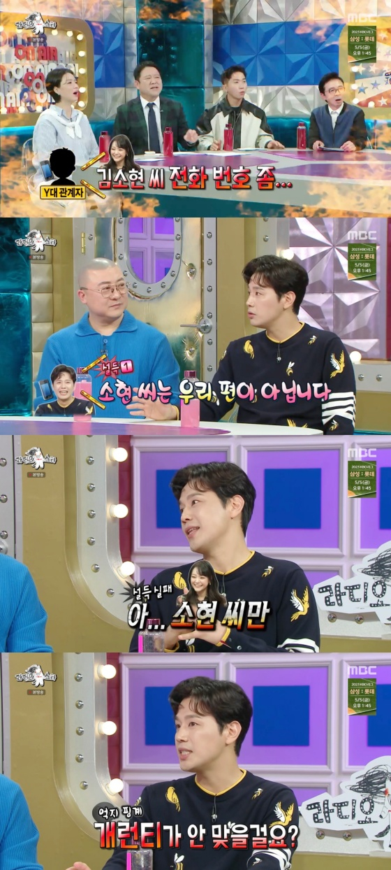 MC 김국진은 "모교 반응은 어떻냐"라고 물었다. 손준호는 "제가 상처받았던 일이 있는데 총동문회에서 연락이 왔다. '저기 죄송한데 김소현 씨 전화번호 좀 알려주세요'했다. 학교에는 제 번호가 있으니까 저한테 전화를 한 거다"라고 전했다. 손준호는 "'소현 씨는 우리 편이 아닙니다. 저쪽 편입니다' 했더니 웃으면서 '아 그래도 소현 씨 번호 좀'라고 물었다. 그래서 '같이 섭외하는 겁니까?'그랬더니 '아 소현 씨만'이라고 했다. 그래서 '아마 개런티가 안 맞을 거다'했더니 '상관없다'고 하더라. 심지어 운전도 제가 해줬다"라며 서운해했다.