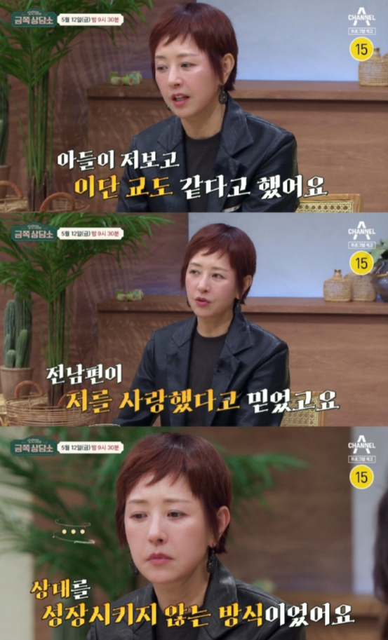 서정희는 "오늘은 다 털어놓고 싶다"라며 "아들이 저보고 이단 교도 같다고 했다. 보지 말라는 건 안 봤고, 연락하지 말라고 하면 안 했다. 남편을 욕하는 아이들이 원망스러울 정도였다"라고 고 서세원과 결혼 생활을 되돌아봤다. 그는 "전남편이 저를 사랑했다고 믿었다"라며 고인에게 폭행당했을 당시 심정을 털어놓기도. 이에 오은영은 "저는 사랑 아니었다고 생각한다. 상대를 성장시키지 않은 방식이기 때문에 사랑이 아니라고 하는 거다"라고 조언했다. 이후 서정희는 "열아홉 살에 결혼하고 환갑이 넘었는데 제 삶은 전부 잘못된 거냐"라고 말해 안타까움을 자아내기도 했다.