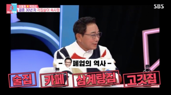 이봉원은 "술집도 했었고 카페도 했었고 삼계탕집에 고깃집을 했다. 심지어 엔터 회사도 했었다'라고 당시를 떠올렸다.
