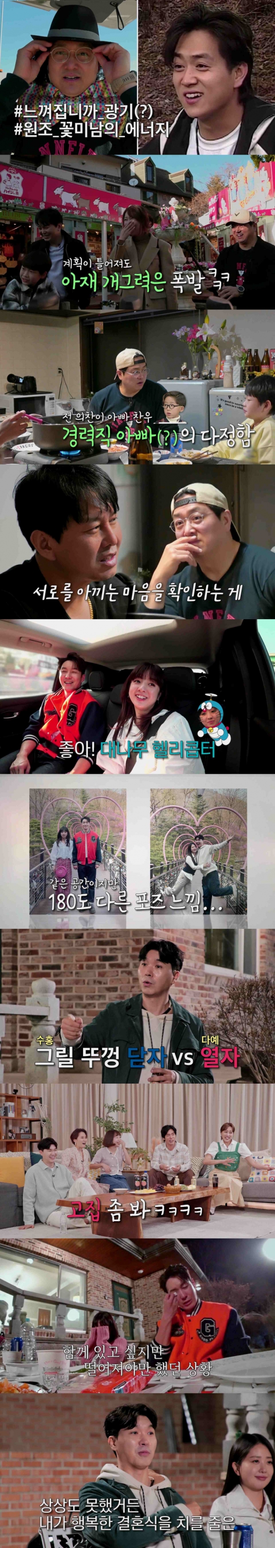 그리고 '수다커플' 박수홍&김다예와 '심야커플' 심형탁&사야의 더블데이트가 이어졌다. 심야커플은 애창곡인 애니메이션 주제가 '대나무 헬리콥터'를 부르며 '화담숲'에 도착했다. 김다예는 화담숲의 명물 모노레일의 티켓이 매진되어 일순 당황했으나, 둘레길을 산책하며 여유를 즐겼다. 하트 모양의 장식물이 있는 다리 위에서 심형탁은 사야와 '뽀뽀 인증샷'을 시도하기도 했지만, 사야가 부끄러워하며 실패했다. '수다커플' 박수홍과 김다예는 결혼 선배답게 대신 능숙한 시범을 보이며 애정을 과시했다.