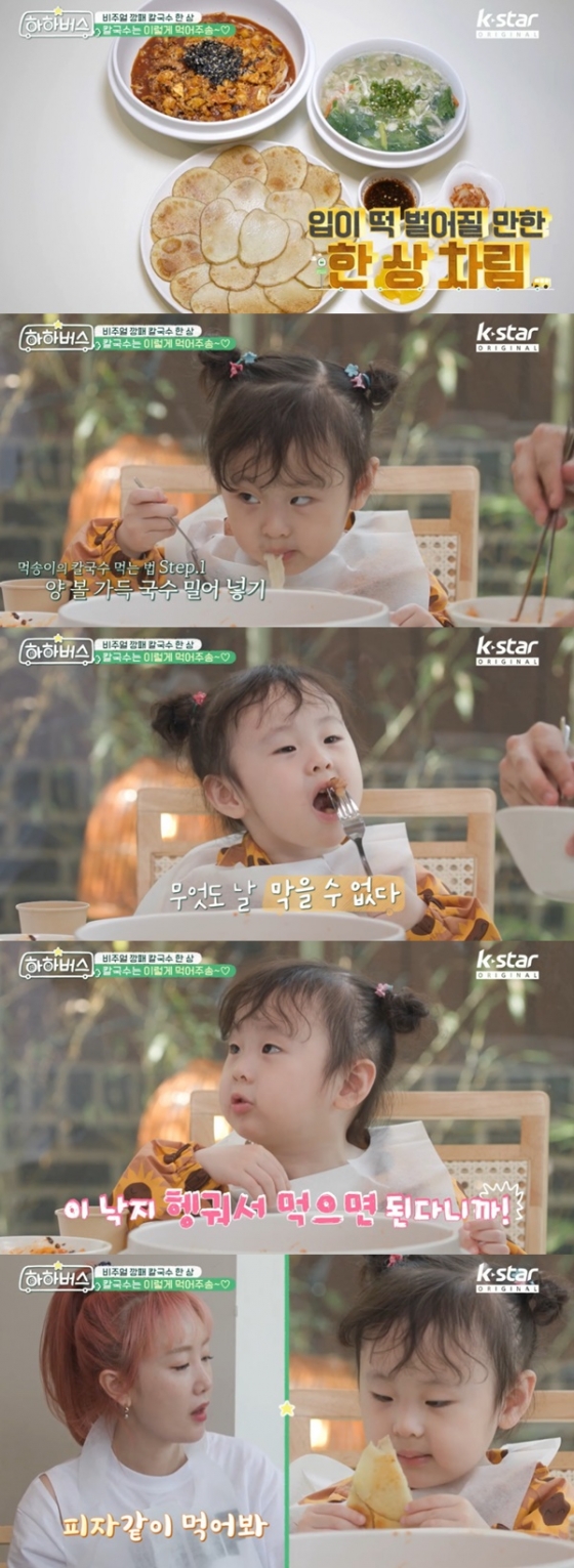 '하하버스' 방송인 하하, 가수 별의 막내딸 송이 '먹방'의 끝을 보여줬다.