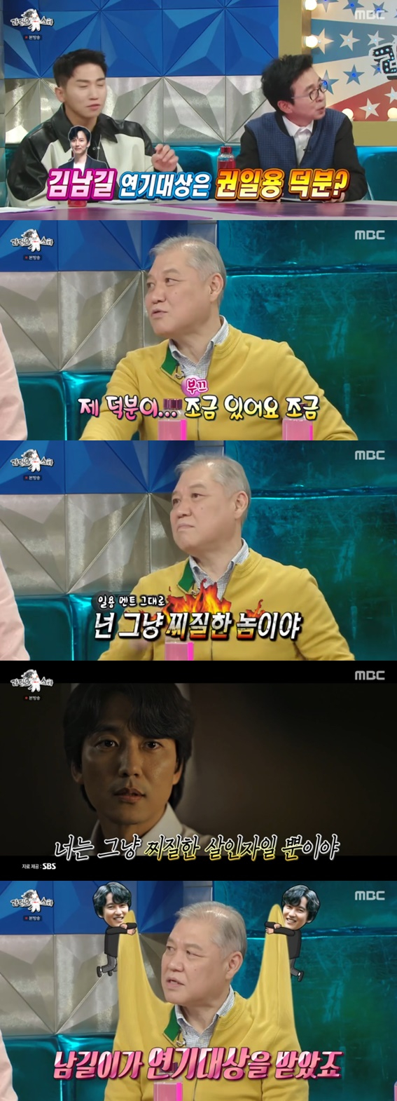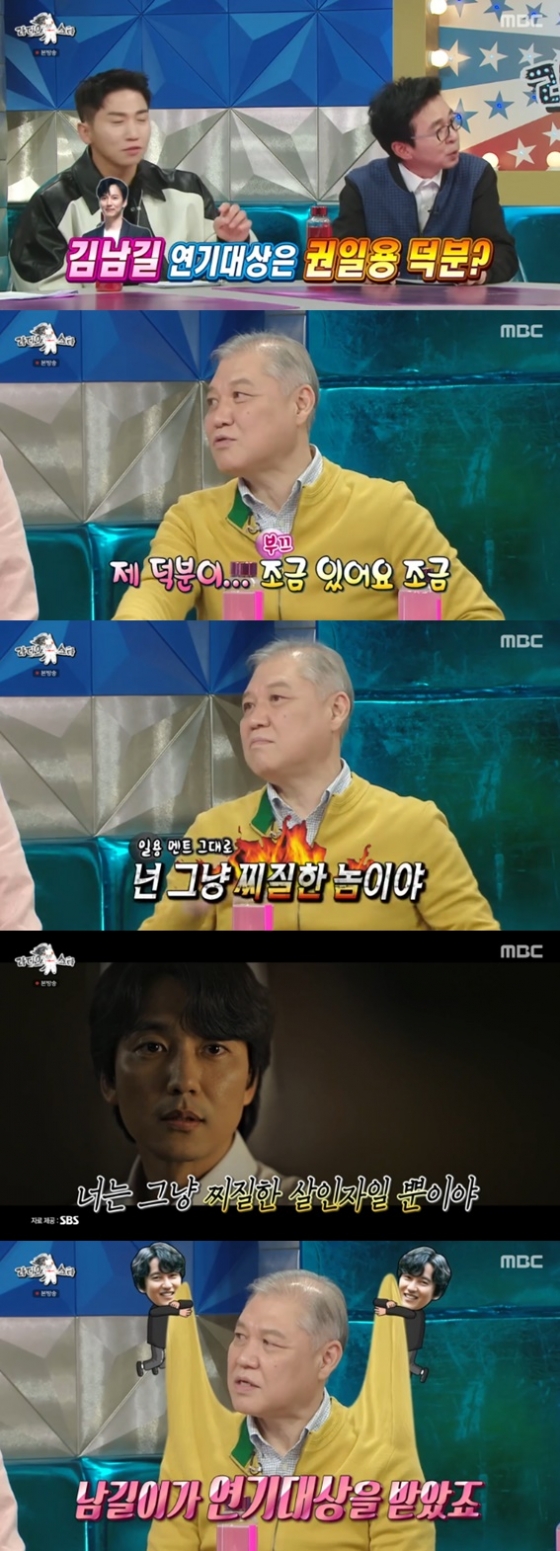 이날 김국진은 "김남길 연기대상은 본인 덕분이다?"라고 물었고, 권일용은 "제 덕분이 조금 있다. 조금. 녹화 현장에 자주 갔는데 내 제스처까지 다 따라한다. 정말 꼼꼼하게 연구를 하더라"고 답했다.