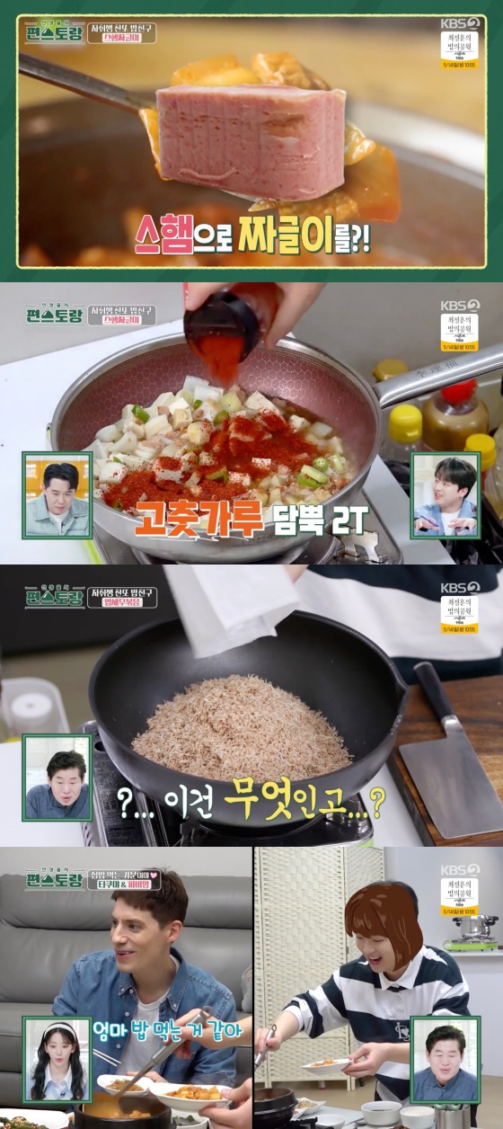 이날 이찬원은 햄을 이용한 짜그리 '스햄짜글이'를 요리했다. 이찬원은 으깬 햄에 감자와 채소를 넣고 고춧가루를 가득 부었다. 이찬원은 간장과 참치액으로 간을 맞췄다. 이찬원은 짜글이와 함께 먹을 밑반찬 '밥새우볶음'도 만들었다. 이찬원은 "밥새우가 멸치보다 저렴한 가격이다. 가성비가 좋다"고 전했다.