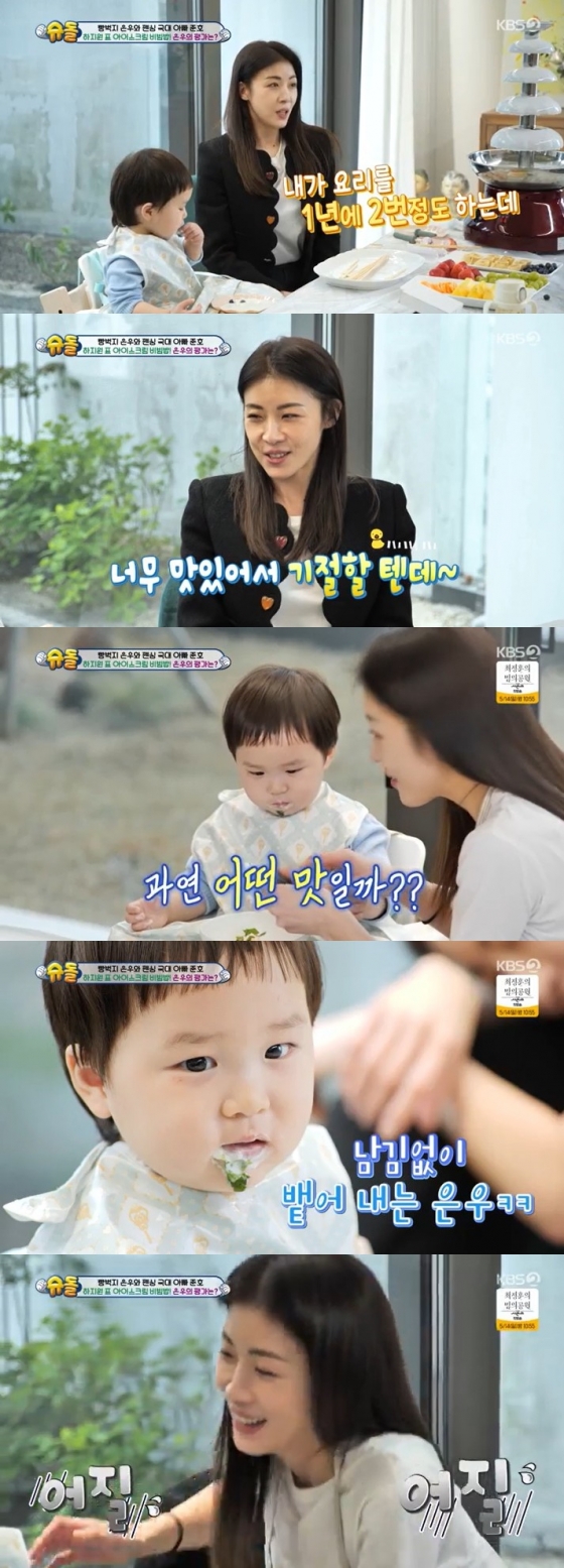 하지원은 은우를 위해 앞서 유튜브에서 공개했던 아이스크림 비빔밥을 선보이기도 했다. 하지원은 "내가 요리를 1년 2번 하는데, 오늘이 그날이다"며 "너무 맛있어서 기절할 거다"며 요리에 대한 자신감을 드러냈다.