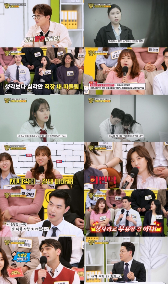 '빌런 감별단'의 정 인턴은 "전 회사에서 과장님이랑 사귀는 '빌런'이 대리님이랑도 사귀는 양다리 중이었고, 이로 인해 팀이 모이기만 하면 살얼음판이 되는 걸 봤다. 사내 연애에 대한 로망이 있었는데 이후로는 절대 피하고 싶다"라며 질색했다. '나솔 옥순' 고초희 차장은 "썸 탈 때는 주변 사람들이 모를 줄 알았는데 회사 복사기도 알더라. 과거 팀장님이 '걔(썸남)랑 붙어 다니지 마라'라고 주의를 주셨는데 괜히 반감이 들어 '제가 일 실수한 건 없지 않냐. 친하게 지내는 동료일 뿐이다'라며 반박했다. 그때의 저 반성한다"라며 '사내 연애 빌런들'이 왜 '빌런'인지에 깊이 공감했다. 불명예의 전당에는 둘 중 압도적인 투표수를 자랑한 '일진 빌런'이 등극했다.