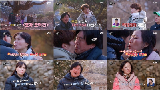 지난 15일 방송된 ENA '효자촌2' 4회에서는 효자촌 온 가족이 모여 삼겹살 파티를 벌이고, 1기에서 팔순 아버지와 뽀뽀로 화제를 모았던 '막대 과자 게임'이 펼쳐졌다. 테이는 "나는 어른들이 좋아하시는 편이나, 어머니는 너무 사랑하는데도 막말하게 된다"며 친숙할 수록 멀어지는 부모와의 관계를 정의하며 이번 회차 에피소드 '환승부모'의 포문을 열었다.