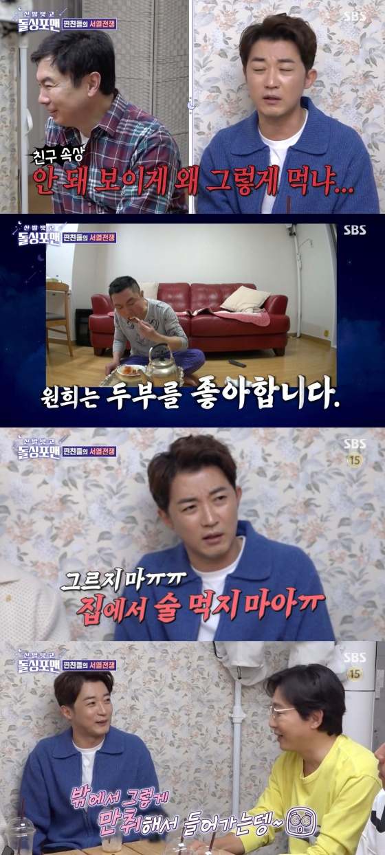 이날 안재욱은 친구 임원희에 잔소리했다. 안재욱은 "나는 원희를 보자마자 뭐라고 했다. '왜 두부김치에 막걸리 먹냐' 했다. 얼굴 시뻘게져서 방송에 나온다. '그것 좀 하지 말라'고 했다"며 속상해했다. '돌싱포맨'멤버 김준호는 "원희 형은 그게 인생의 낙이다"라고 전했다.