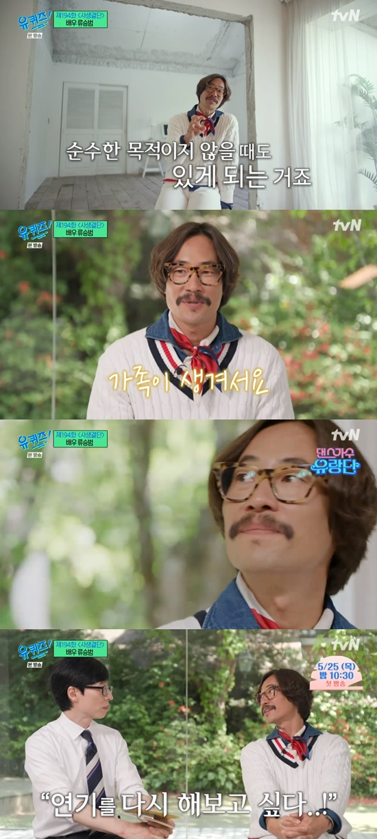 류승범은 지난 17일 방송 된 tvN '유 퀴즈 온 더 블럭'에 출연했다. 무려 15년 만에 예능에 출연한 류승범은 최근의 근황에 대한 이야기를 시작으로 그간 쌓아온 필모그래피, 앞으로의 계획을 솔직담백하게 밝혔다.
