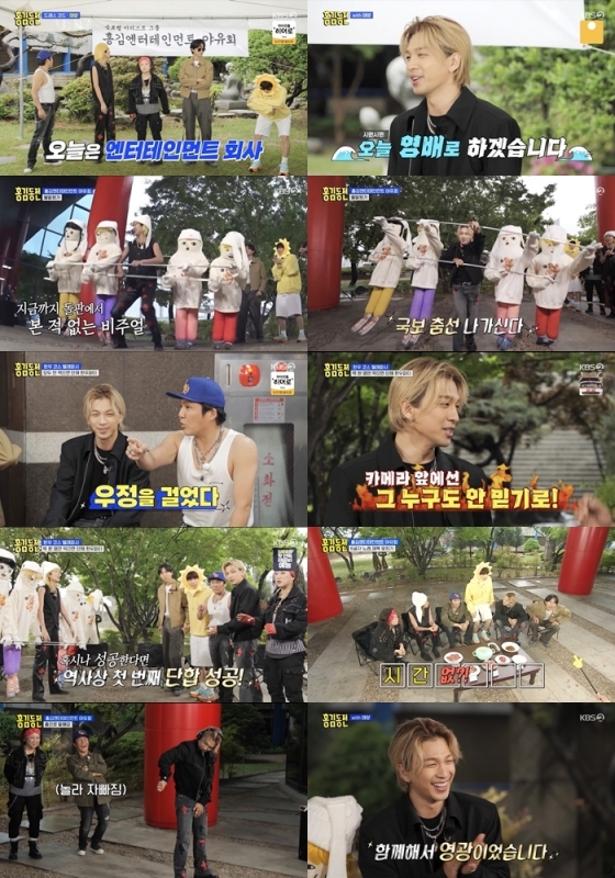 지난 18일 오후 방송된 KBS 2TV 예능 '홍김동전'에는 스페셜 게스트 태양이 출연한 가운데 '홍김엔터테인먼트 야유회'가 펼쳐졌다.