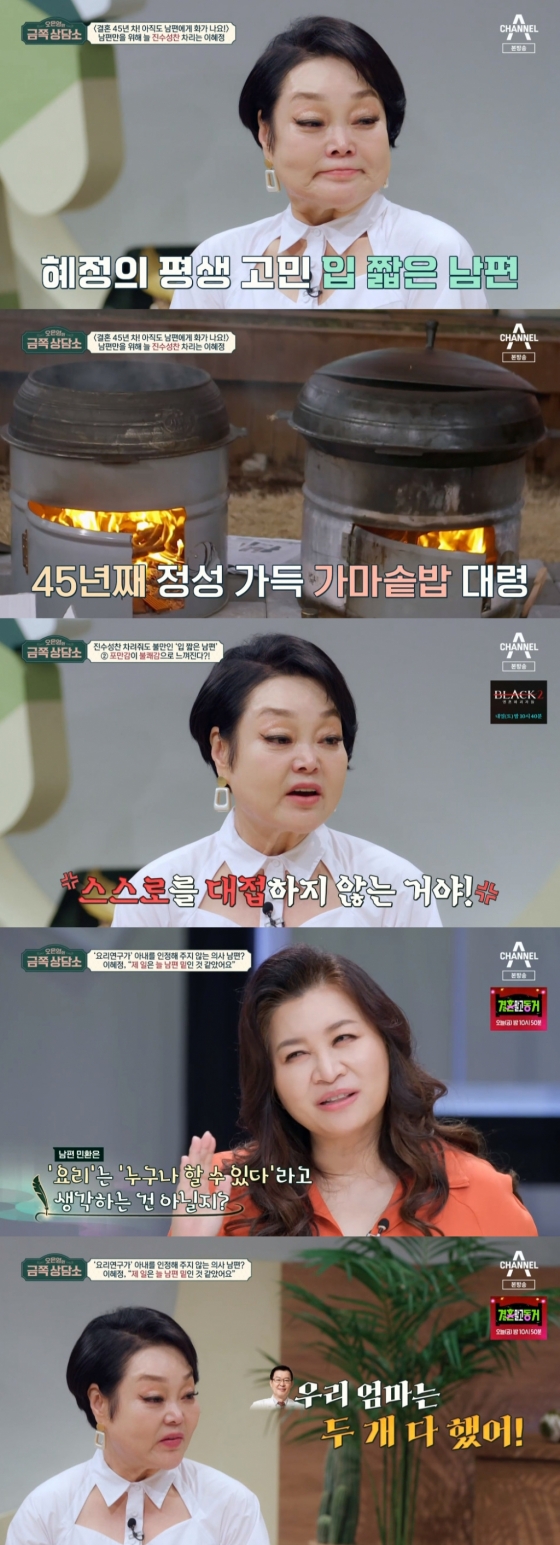 19일 방송된 채널A '오은영의 금쪽상담소'에는 결혼 45년 차의 요리연구가 이혜정이 출연해 고민을 털어놨다.
