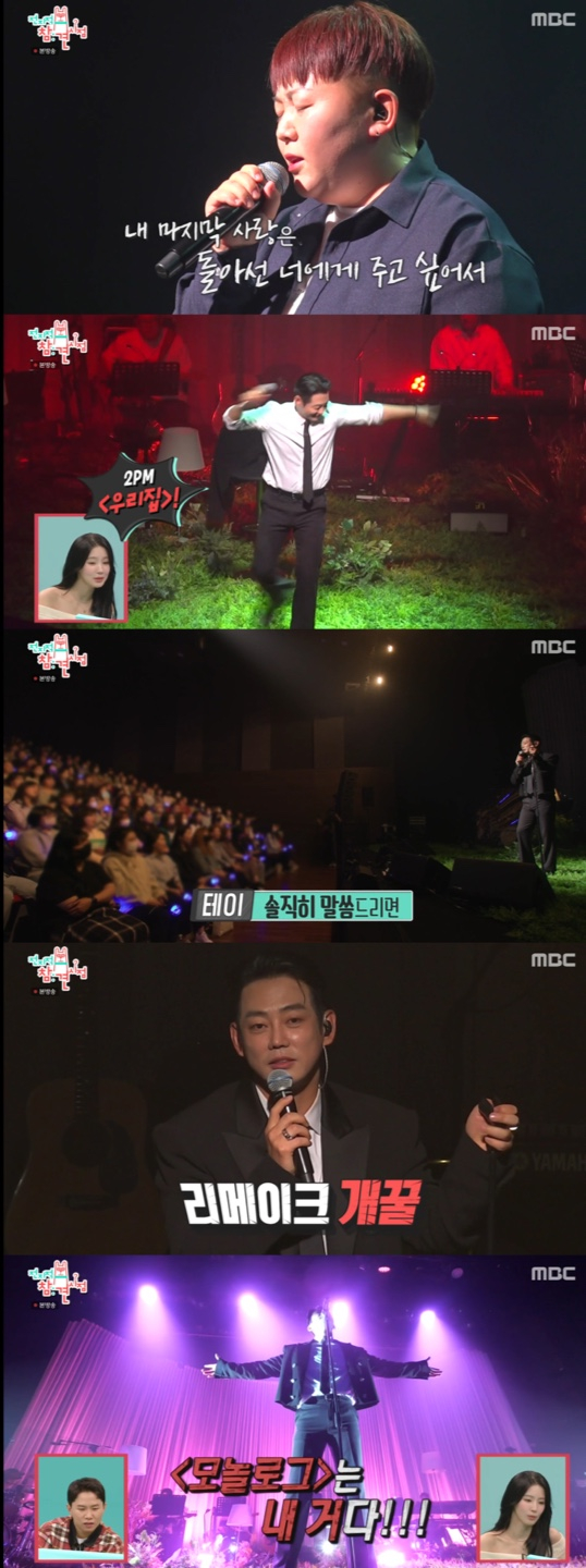 이후 테이는 원곡 가수를 뛰어넘는 리메이크를 선보여 화제가 된 버즈의 '모놀로그'를 열창했다. 노래를 부르기 전 테이는 "댓글에 '테이 형 계속 꿀 빠네'라고 하더라. 그런데 솔직히 말씀드리면 리메이크 하는 게 개꿀이다. 계속하고 싶다"라며 솔직한 마음을 털어놨다. 그러면서 "이제 버즈의 '모놀로그'라는 노래는 제 곡이다. 테이의 대표곡은 '모놀로그'다"라고 외쳤다. 또한, 전주가 나오는 중 "모놀로그는 내 거다. 민경훈 고마워"라고 외쳐 모두를 폭소케 했다.