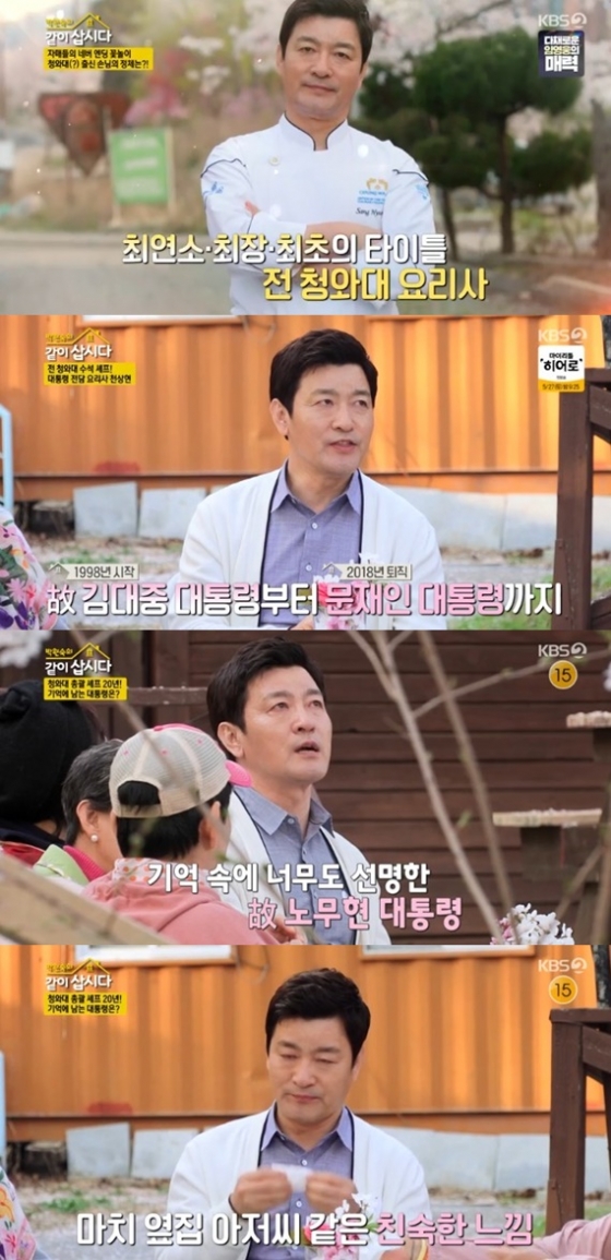 천상현 셰프는 "(故노무현 대통령) 그분이 기억에 가장 남는다. 한 나라의 대통령이었지만 옆집 아저씨같이 친숙했다"며 "하계 휴양지에 방문했을 때 모든 직원이 함께 식사를 하고, 주방에 들려 이야기도 나누었다"고 전했다.