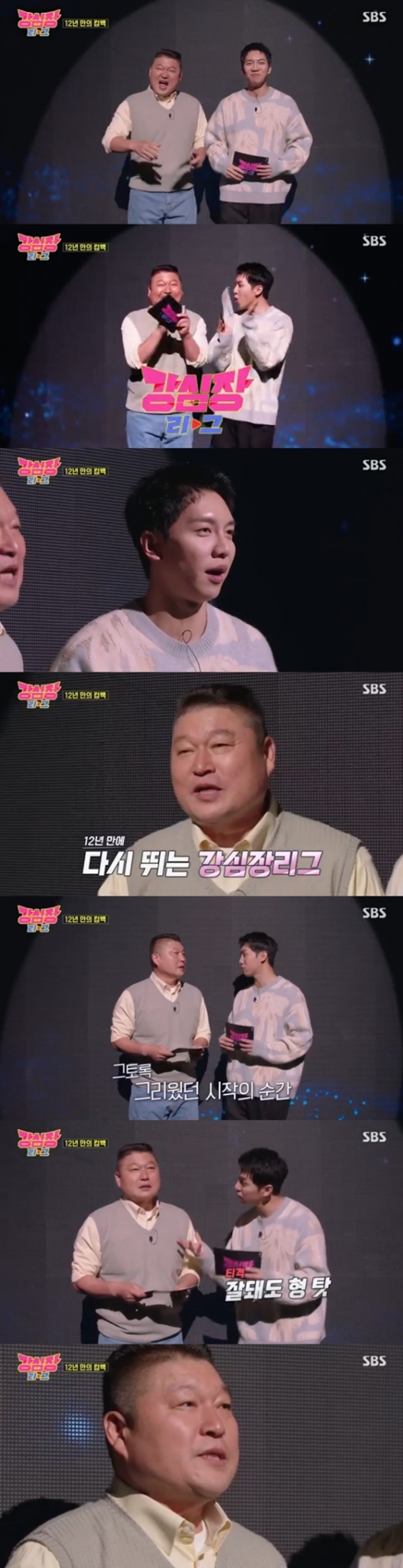 '강심장리그'의 MC는 강호동, 이승기가 맡았다. 두 사람은 2011년 '강심장' 이후 12년 만에 다시 만났다.