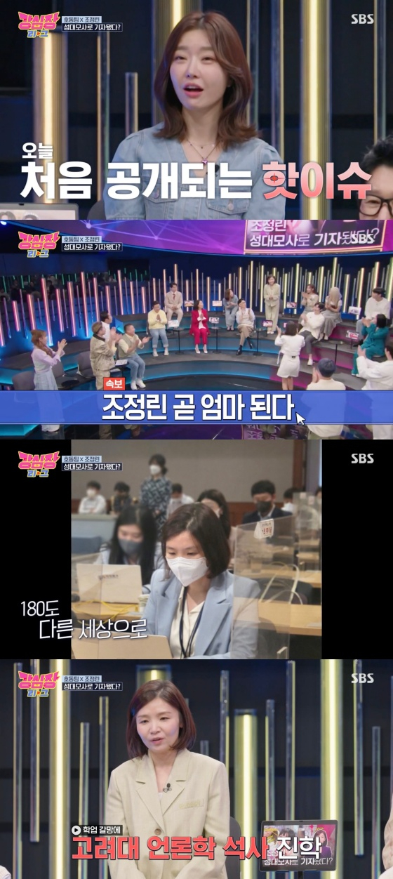 조정린은 "지독하게 한다고 했는데 테스트를 하고 싶은 마음도 들었다. 그러던 찰나에 수습기자 채용 시즌이었다. 방송기자로 다시 도전을 해서 지금까지 12년 차 기자로 활동하고 있다"고 전했다.