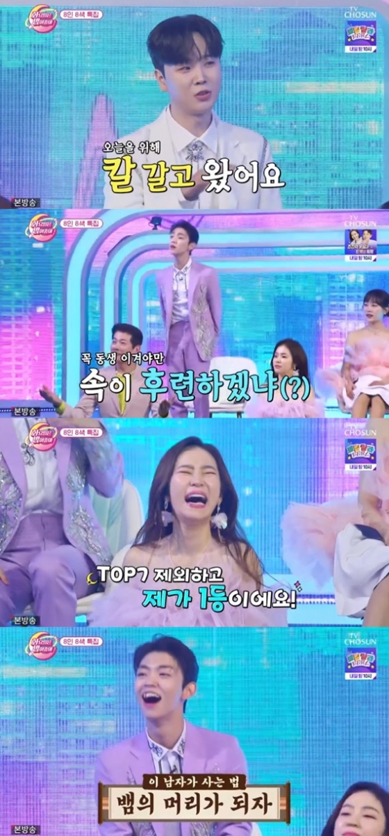 송민준은 붐의 말에 굴하지 않고 "탑 7을 제외하고 내가 1등이다. 용의 꼬리가 되느니 뱀의 머리가 되겠다"고 밝혀 웃음을 자아냈다.