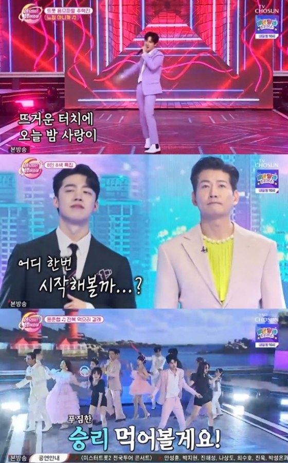 23일 방송된 TV조선 예능 프로그램 '화요일은 밤이 좋아' 69회에서는 '미스터트롯2 팔인팔색' 특집으로 김용필, 황민호, 윤준협, 송민준, 추혁진, 장송호, 길병민, 이하준이 출격해 무대를 꾸몄다.