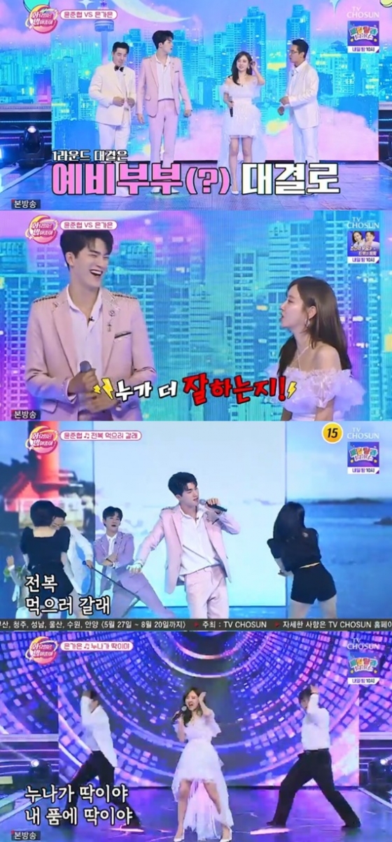이에 은가은은 윤준협에게 "내가 이기면 부르지마라"고 답하며 호탕하게 웃었다. 윤준협은 영탁의 '전복 먹으러 갈래'를, 은가은은 영탁의 '누나가 딱이야'를 뽑으며 같은 가수의 노래를 선곡해 기대를 자아냈다.