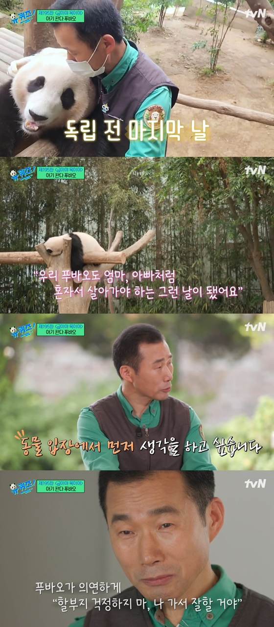 tvN 예능 프로그램 '유 퀴즈 온 더 블록'(이하 '유퀴즈') 강철원 사육사가 판다 푸바오와의 이별을 앞두고 눈물을 보였다.