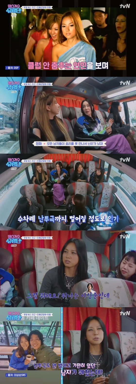 '댄스가수 유랑단'이 첫 공연을 떠났다. 진해로 가는 길, 이효리는 과거의 인기를 되뇌이며 "그럼 뭐해. 위너는 이상순인데"라고 말해 웃음을 자아냈다.