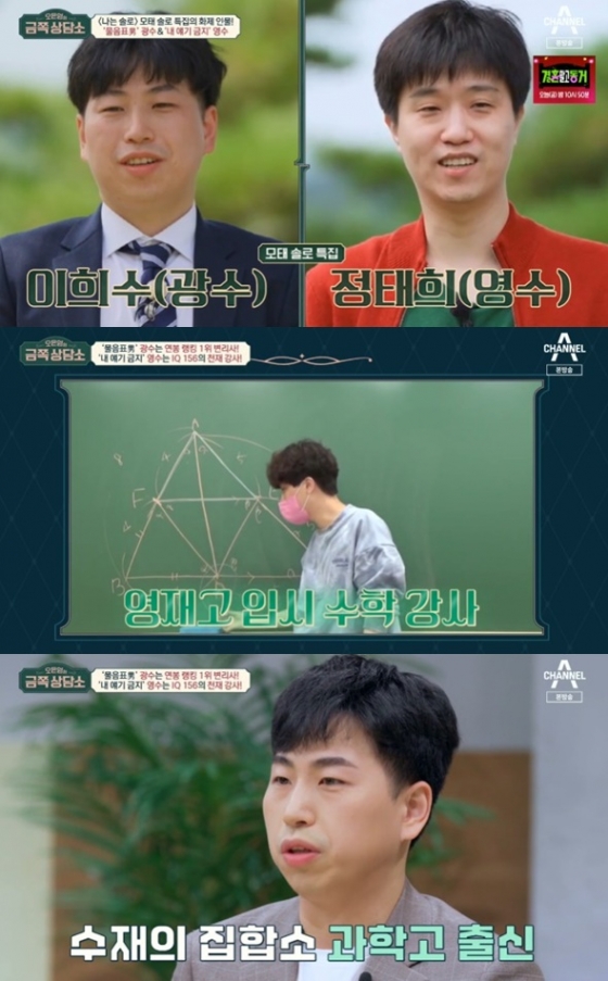 26일 방송된 채널A 예능 프로그램 '오은영의 금쪽상담소'에서는 '나는 솔로' 12기 모태솔로 편을 통해 얼굴을 알린 변리사 이희수(광수)와 멘사 출신 수학 강사 정태희가 출연했다.