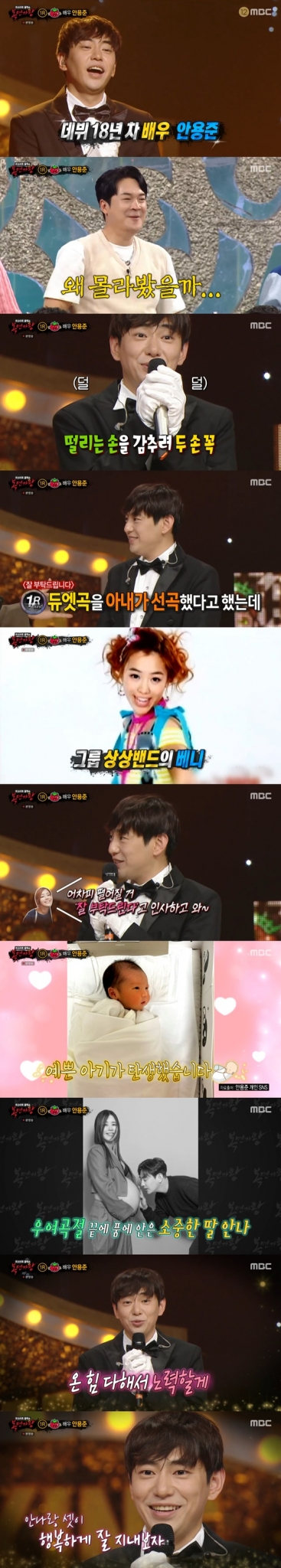 안용준은 자신을 "애처가"라고 소개하며 "어릴 때부터 아역 배우 활동을 하다 보니 카메라엔 익숙한데 대중 앞에 서는 걸 무서워 한다. 두려움을 깨고자 무대에 섰다"고 밝혔다.