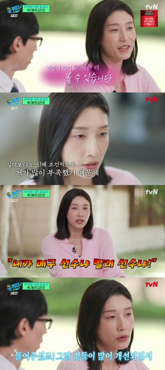 또한 김연경은 "저는 공을 안고 살았다. 힘들었는데 재밌었다. 그때 추억이 되게 많은 것 같다. 다른 선수들이랑 같이 노력하고 힘든 시기를 지나왔던 게 좋은 추억이었다"면서 "버텨도 못 뛰니까 힘들었다. 실력보다도 신체 조건적으로 부족했는데 운동이 좋고, 배구가 좋아서 버텼던 것 같다"고 밝혔다.