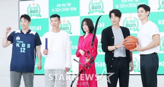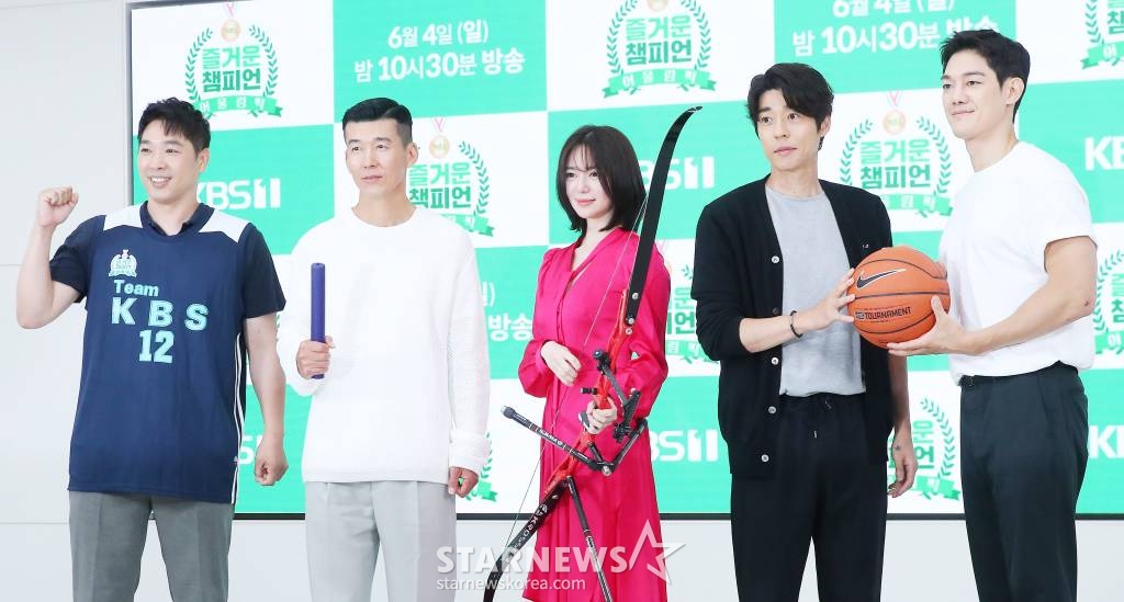 2일 오전 서울 영등포구 여의도동 KBS 본관에서 KBS 1TV 예능 프로그램 '즐거운 챔피언3 - 어울림픽'(이하 '어울림픽') 제작발표회가 진행된 가운데, 손성권 PD와 가수 션, 배우 이엘리야, 서지석, 박재민이 참석했다.