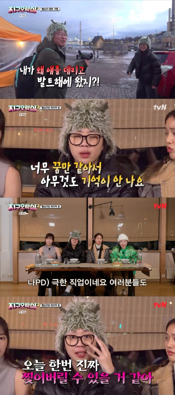 한편 발트해에 도착한 이영지는 나영석 PD에 "사진 안 찍고 싶고 첫사랑 얘기해 주세요"라고 애원했다. 이후 이영지는 귀여운 동물 모자를 발견하고 나영석 PD 머리에 씌워 "휘바 휘바"라고 외쳤다.
