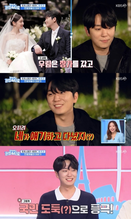 고우림은 자신에 이어 멤버 중 두 번째로 결혼한 맏형 배두훈에게 결혼 조언을 건네기도. 배두훈은 8년 간 사귄 여자친구와 지난 5월 결혼했다. 고우림은 "아내(김연아)와 '평소 못하다가 한 번 잘하는 것보다 평소에 잘하는 게 낫다'라는 주제로 대화를 자주 한다"며 "그런 가치관이 아내와 잘 맞았다. 특별한 날보다 평소에 말 예쁘게 하고 그런 것들이 와이프랑 잘 맞았다. 꾸준히 변함없는 모습 보여주기"라고 말했다.