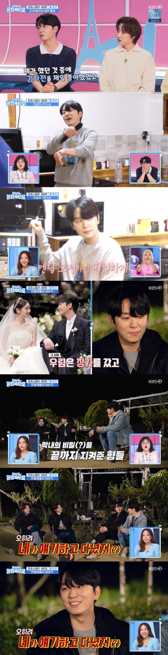 포레스텔라 멤버들은 고우림과 김연아의 비밀 연애를 먼저 알고 있었지만 비밀을 지켜줬다며 "오히려 네가 얘기하고 다녔지"라고 말했다. 강형호는 자신이 두 사람의 비밀 연애를 제일 먼저 알았다며 "어느 날 우림이가 자신의 휴대폰 바탕화면을 툭툭 치면서 보라고 하더라. 휴대폰 바탕화면에 두 사람의 손이 포개진 사진을 보고 비밀 연애를 알게 됐다"고 밝혔다. 고우림은 "말로 '만나요'라고 하기가 부끄럽더라. 그걸 알고서 형이 '이 미친 X이'라면서 내 어깨를 치더라"라고 말해 웃음을 자아냈다. 고우림은 "결혼까지 모든 과정을 지켜줘서 너무 고마웠다"고 했다.