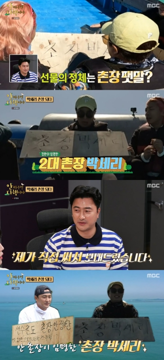 박세리가 보자기를 풀자 '촌장 박세리'라고 적혀있는 팻말이 나타났다. 안정환은 "섬 생활에 적응하는데 모든 게 완벽했다. 같이 간 동료들을 너무 잘 챙기는 모습에 저분은 촌장을 해야되겠다고 생각했다. 최초의 여성 촌장을 해줬음 하는 바람에 써줬는데 받아줘서 감사하다"며 박세리를 촌장으로 임명한 이유를 밝혔다.
