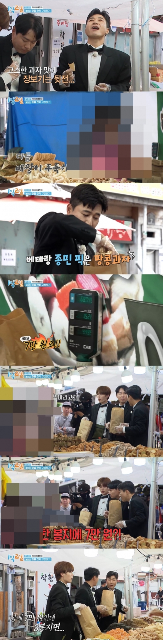 이후 세 사람은 옛날과자 구매를 잠시 망설이는 듯했다. 그러나 사장은 이미 포장을 마친 상태였다. 이후 가격 흥정으로 3봉지를 14만원에 최종 구매했다.