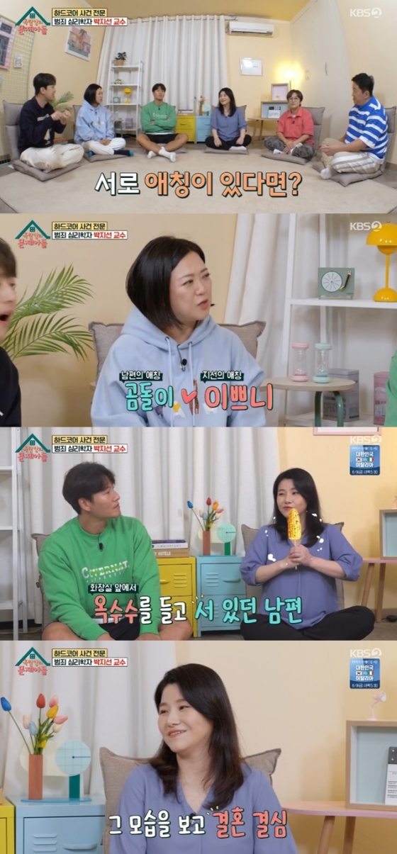 이어 김종국은 "혹시 남편에게 반한순간이 있냐"고 물었고 박지선은 "저 모습이라면 평생 갈수 있겠다"며 결혼을 결심하게 된 일화를 공개했다.