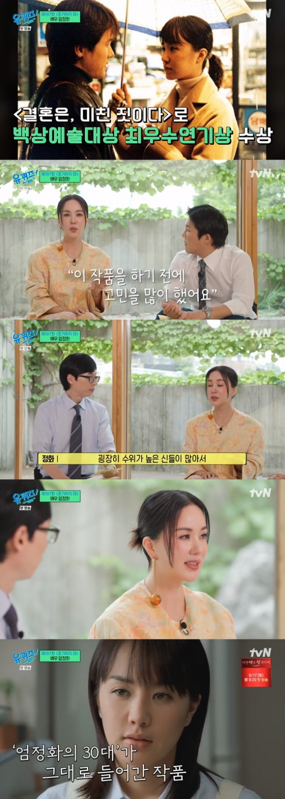 엄정화 "'결혼은 미친 짓이다', 수위 높은 노출에 고민..꼭 하고 싶었다" [별별TV](유퀴즈)